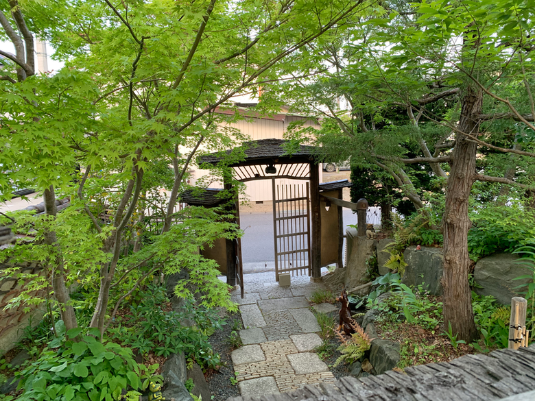 常に清水が湧き出している庭は、お店への期待感を高めます。夜はライトアップされていて細部にまでこだわり抜いた空間創造の結晶が訪れる人々に感動と癒しをもたらします。
